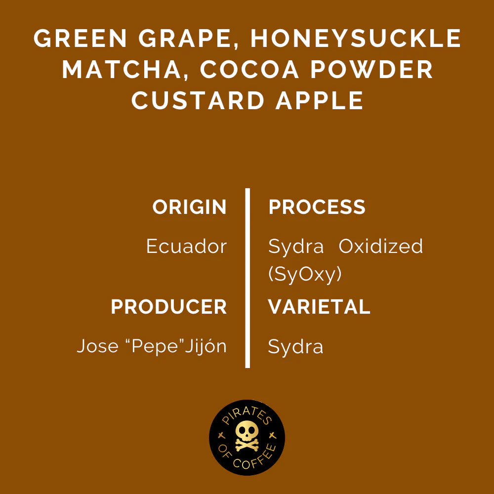 SyOxy is a one-of-a-kind coffee that pushes flavor boundaries. Grown at Finca Soledad, Ecuador, by renowned producer Jose "Pepe" Jijón, this exceptional coffee is a rare Sydra varietal produced with the unique Oxidization process.